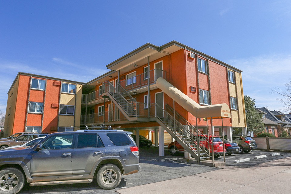 Efficiency kitchens feature modern cabinetry refrigerator and gas range and each apartment has hardwood floors and a walk. Logan Flats has rental units ranging from 400-650 sq ft. In the 80203 area of Denver.